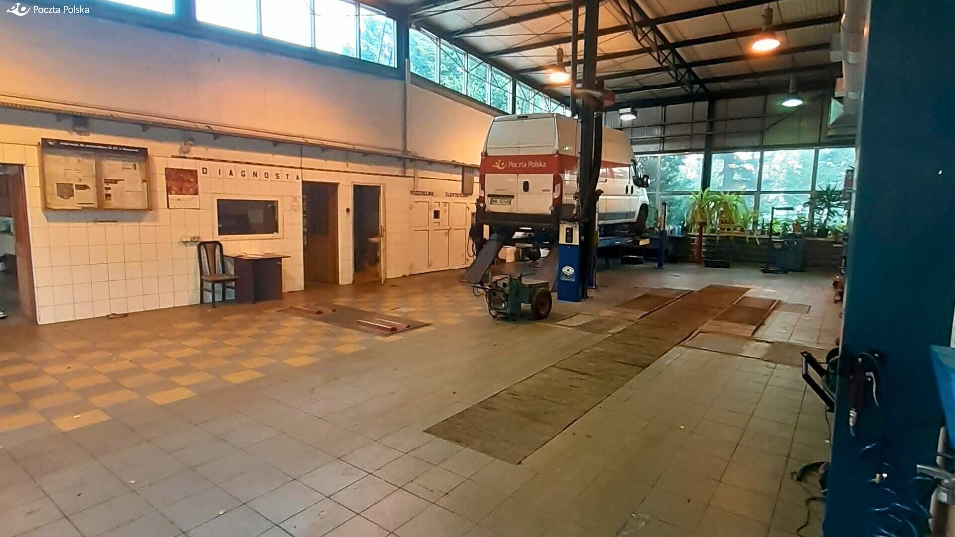 Poczta Polska S.A. prezentuje nieruchomość na wynajem, która stanowi dobrą przestrzeń na prowadzenie działalności związanej z przeglądem, serwisowaniem i naprawą samochodów osobowych i dostawczych.