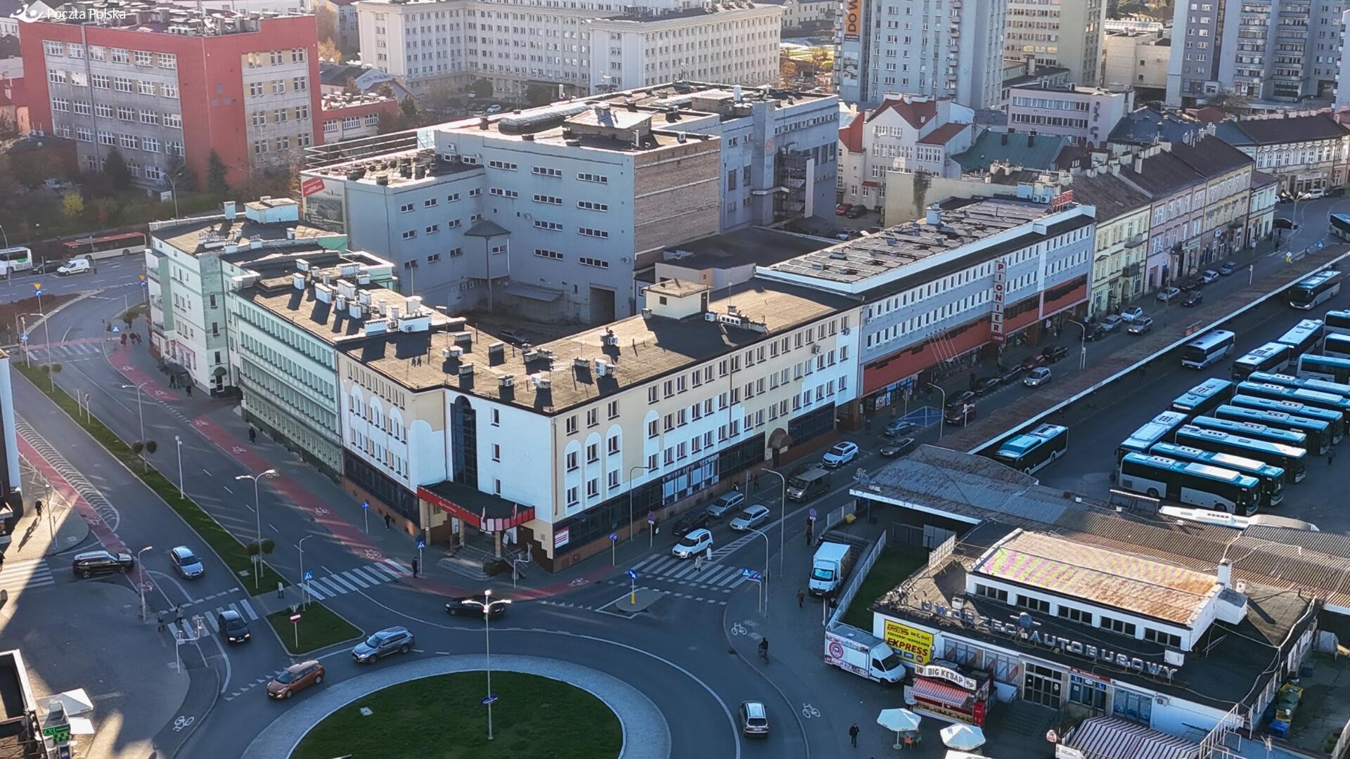 - Bezpośrednie sąsiedztwo głównego węzła komunikacyjnego miasta – dworca PKP (220 m) i autobusowego (210 m) zapewniającego duży ruch pieszy.