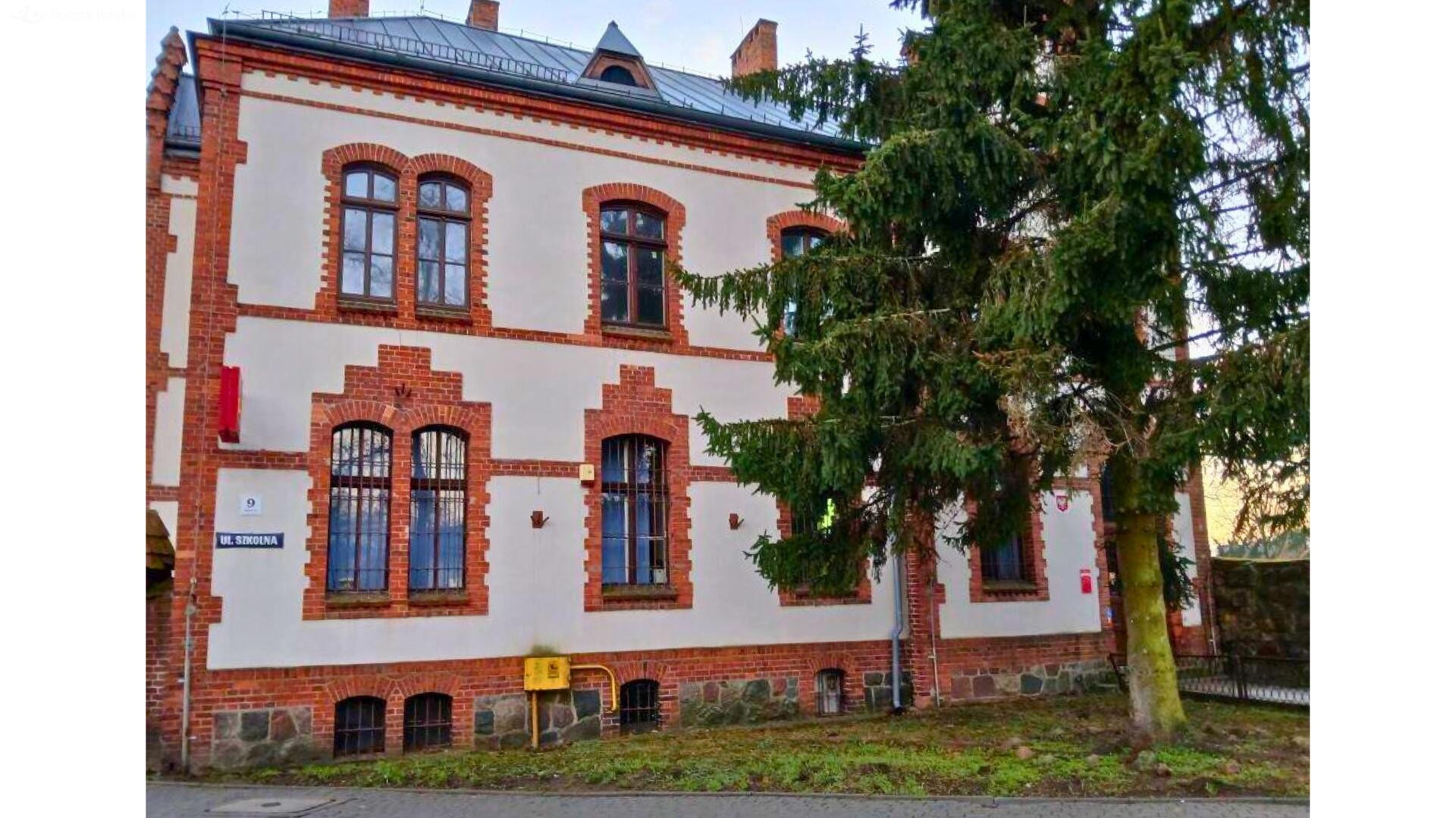 - W budynku na parterze znajduje się placówka pocztowa,